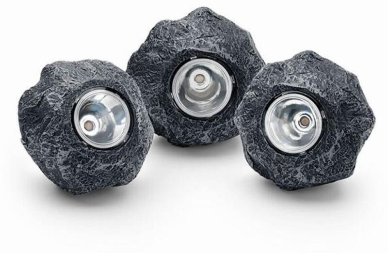 Attraktív sziklalámpa készlet, időtlen pala megjelenéssel Energiatakarékos, meleg fehér LED fény a kert, a növényágyás és tó hangulatos megvilágításához Alkalmas víz alatti és feletti használatra egyaránt (IP 68) A készlet három sziklalámpát, egy transzformátort valamint 2 m + 3 m és 2 m + 2 m + 2 m hosszú kábelt tartalmaz